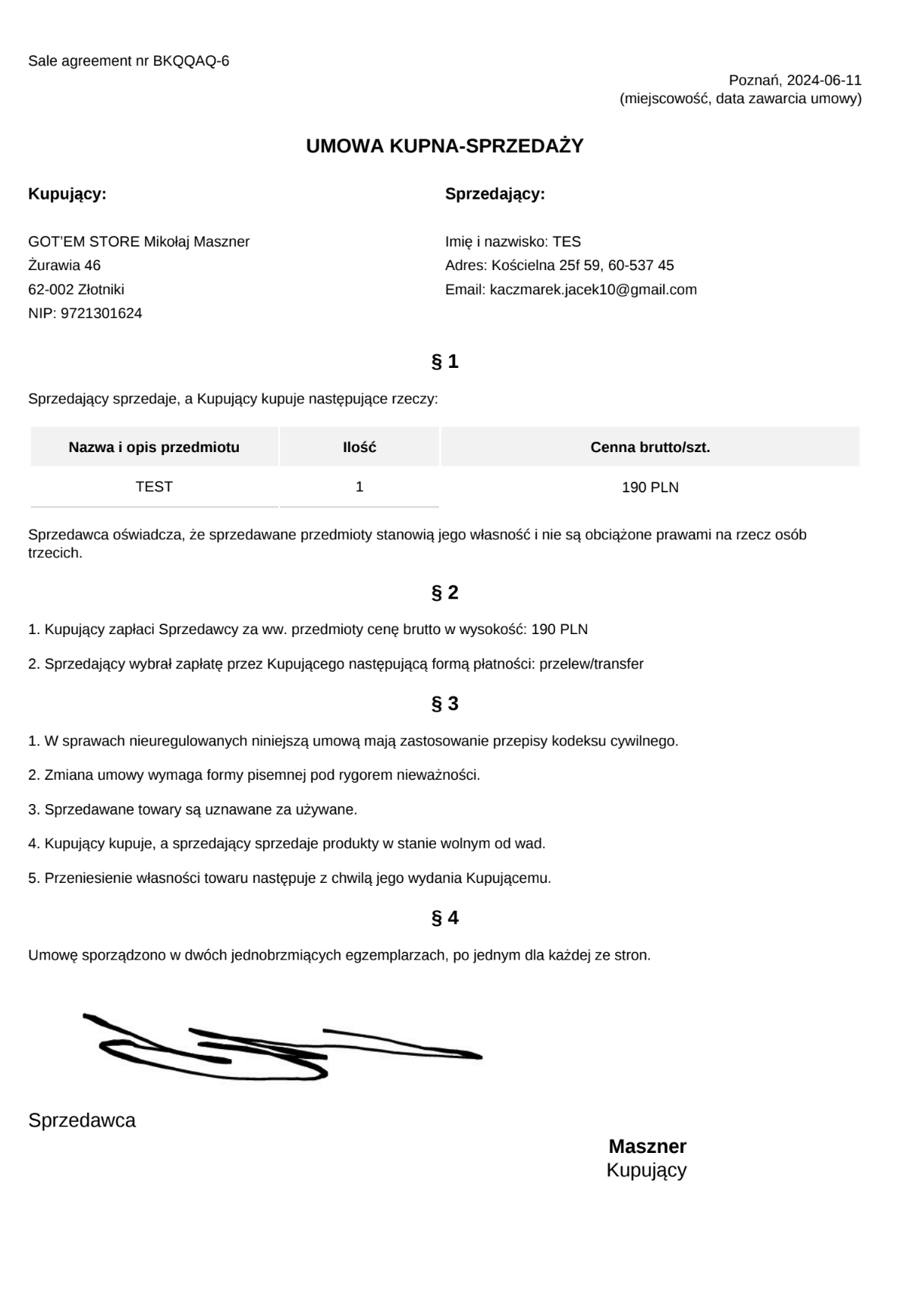 A web application for generating sales contracts, dedicated to shoe stores, providing fast and convenient creation of legal documents.